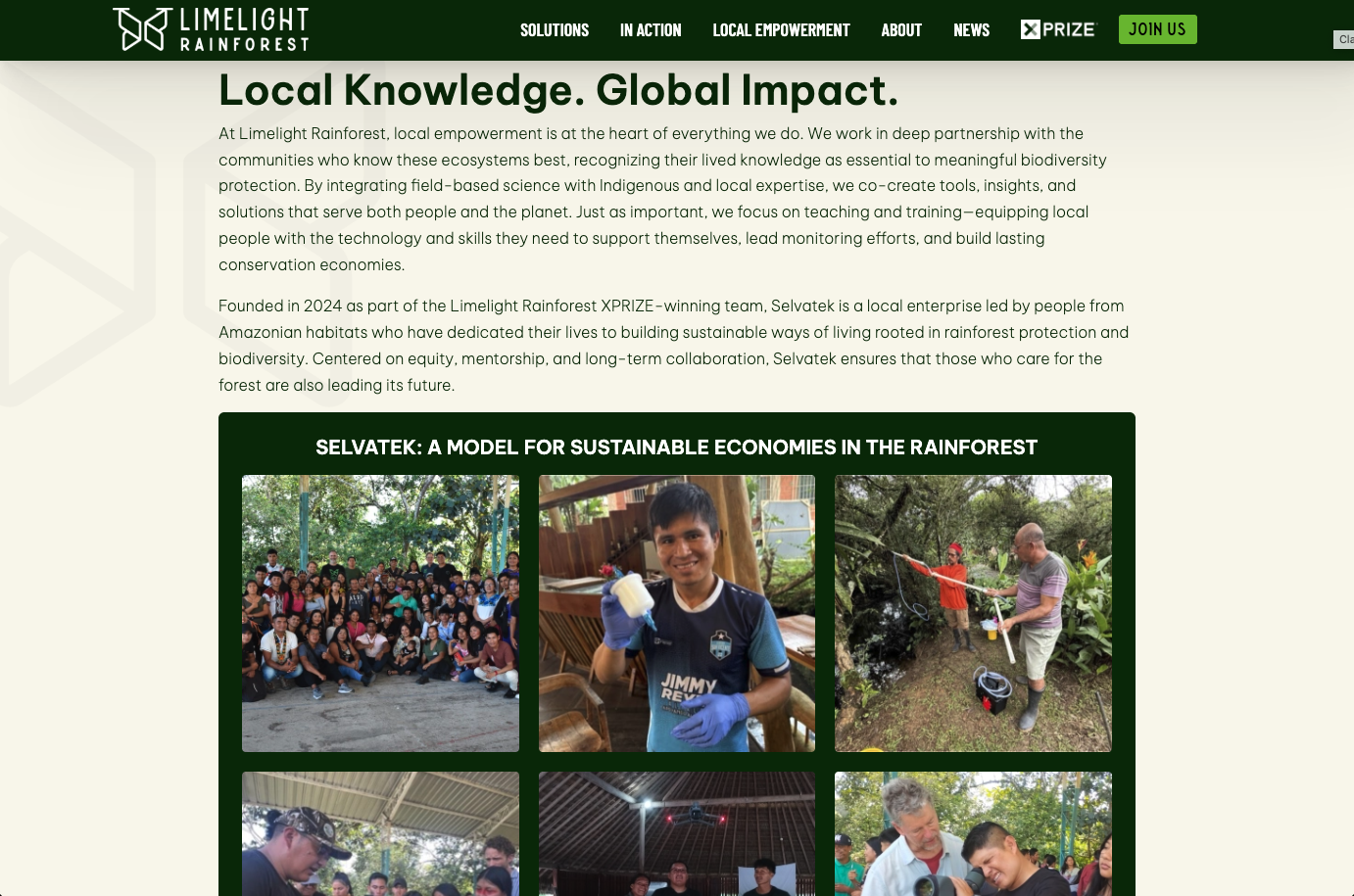 On the technical side, we built a user-friendly navigation structure with well-defined sections. Each section unpacks a different piece of their mission—from camera trapping, eDNA sampling, and canopy tree mapping, to their investment in local community empowerment.